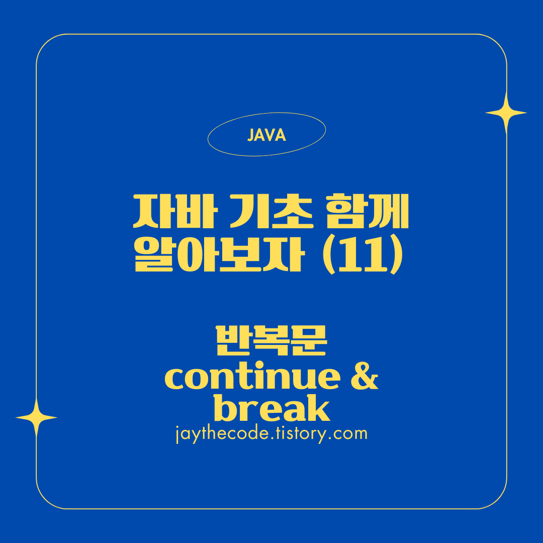 지난번 for-each 반복문에 이어서 이번글에서는 continue와 break에대해서 알아보겠습니다. 자바 코드를 작성하다 보면 반복문을 정말 많이 사용하게 됩니다. 이때 continue와 break를 적절히 활용한다면 반복문을효과적으로 제어할 수 있습니다. 먼저 두 코드가 어떤 기능을 하는지에 대해서 살펴보겠습니다. continue와 break는 반복문을 중단하는 기능을 가지고 있습니다.이렇게 보면 continue와 break의 차이점이 뭐야? 라고 생각할 수도 있습니다. 하지만 두 코드는 기능이 다른 코드이며 아래에서 하나씩 자세히살펴보도록 하겠습니다.break 먼저 break에 대해서 알아보겠습니다. break는 반복문 전체를 정지하고 반복을 빠져나오고 싶을 때사용하는 코드입니다. 아래 예시를 ..